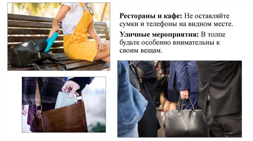 Рестораны и кафе: Не оставляйтесумки и телефоны на видном месте.