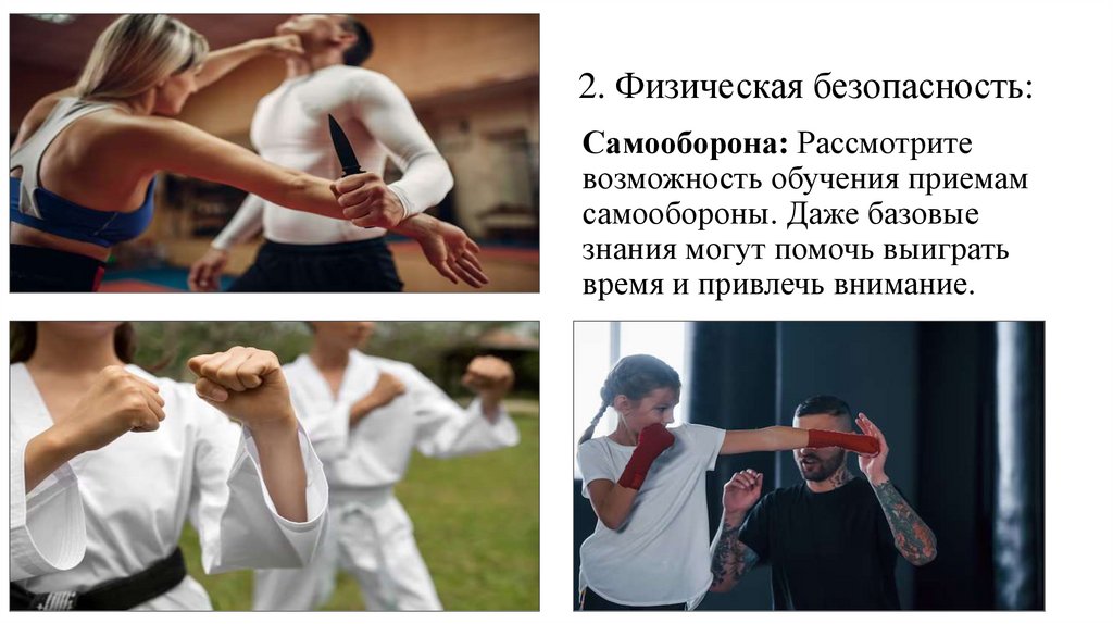 2. Физическая безопасность:Самооборона: Рассмотрите