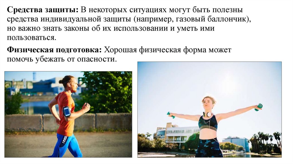 Средства защиты: В некоторых ситуациях могут быть полезнысредства индивидуальной защиты (например, газовый баллончик),