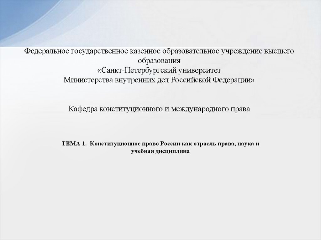 ТЕМА 1. Конституционное право России как отрасль права, наука и