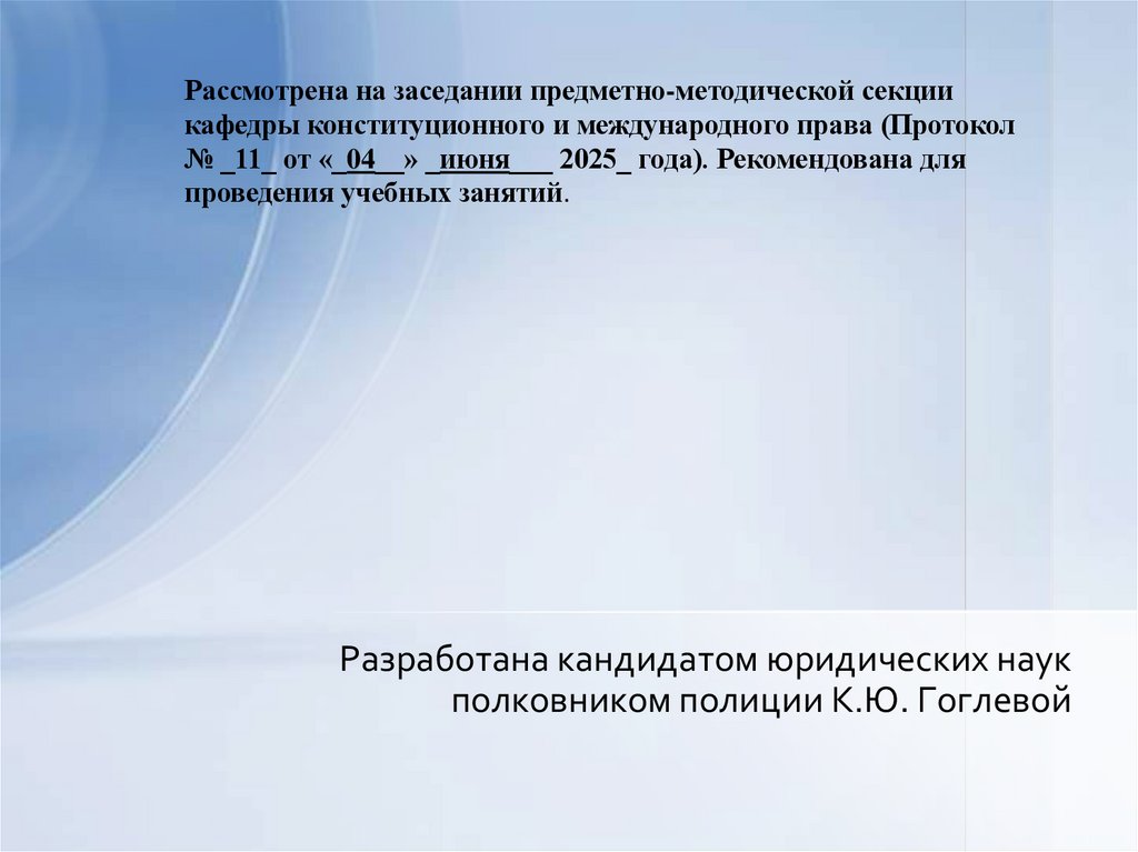 Рассмотрена на заседании предметно-методической секциикафедры конституционного и международного права (Протокол