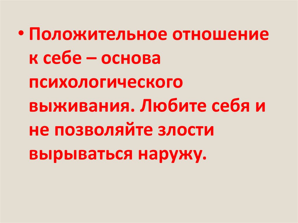 • Положительное отношениек себе – основа