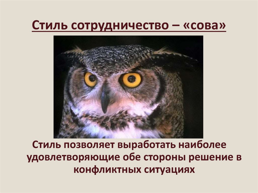 Стиль сотрудничество – «сова»Стиль позволяет выработать наиболее