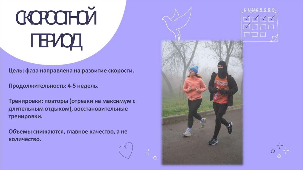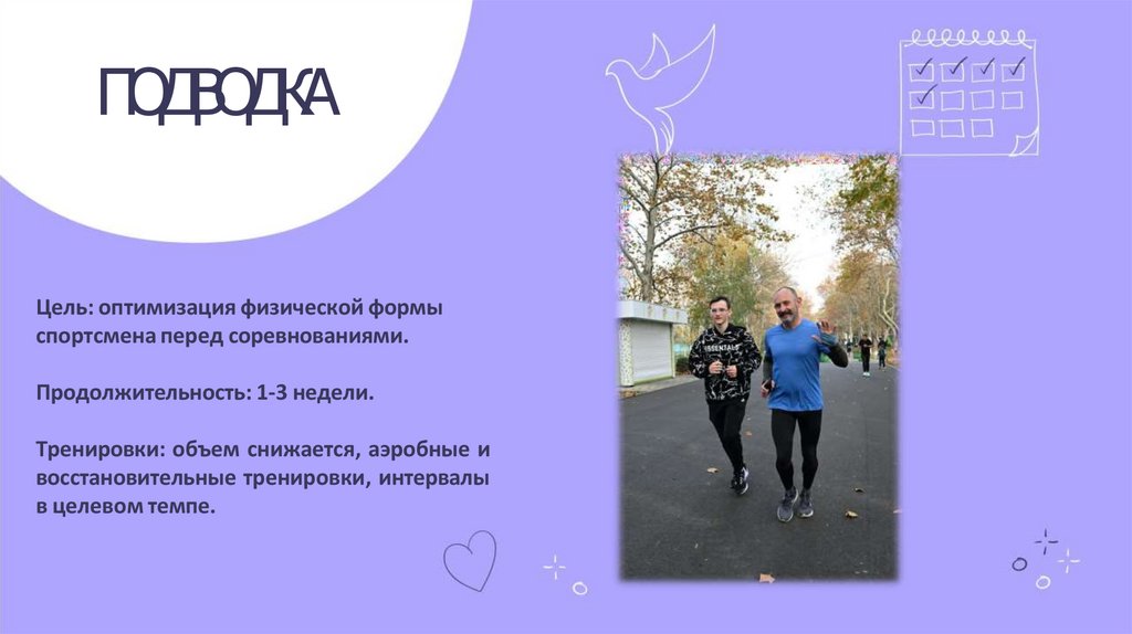 • Тренировки: аэробные, длительные, переменный