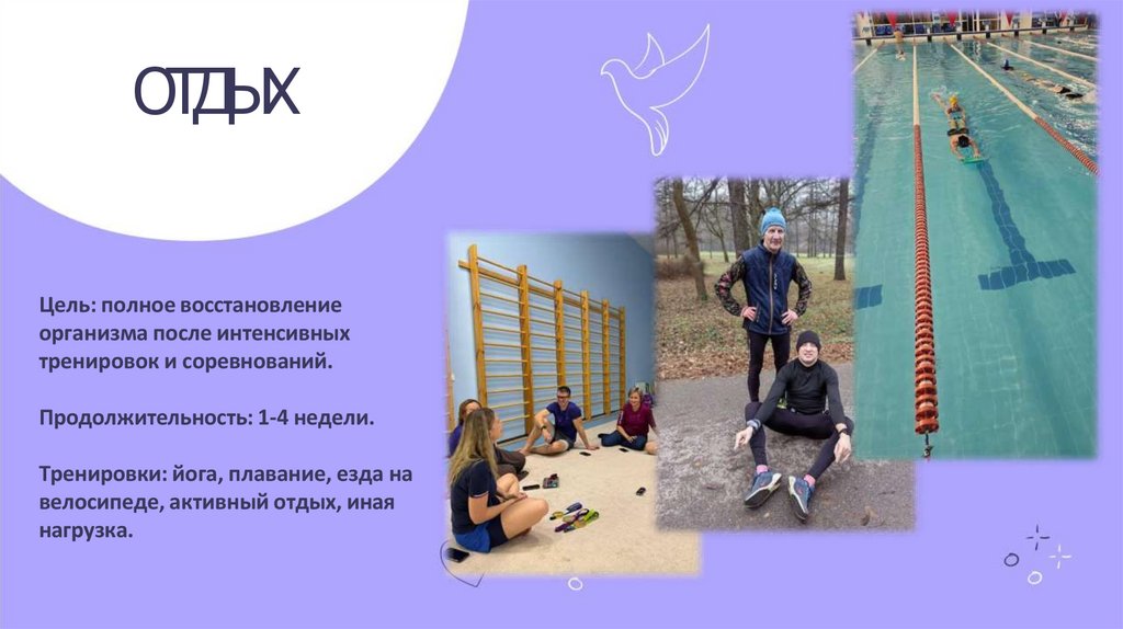 Тренировки: йога, плавание, езда на