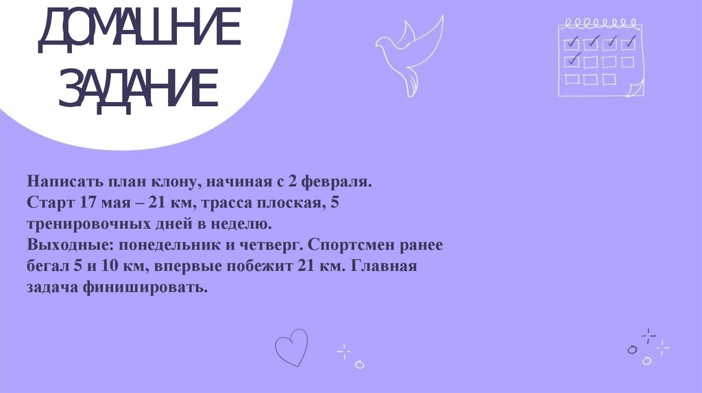 Написать план клону, начиная с 2 февраля.
