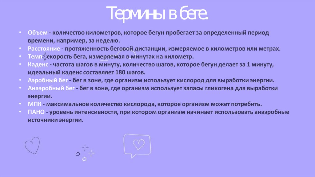 Термины в беге.• Объем - количество километров, которое бегун пробегает за определенный период