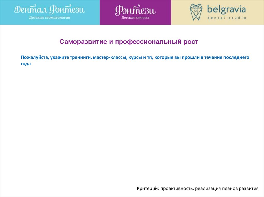 Саморазвитие и профессиональный ростПожалуйста, укажите тренинги, мастер-классы, курсы и тп, которые вы прошли в течение последнего