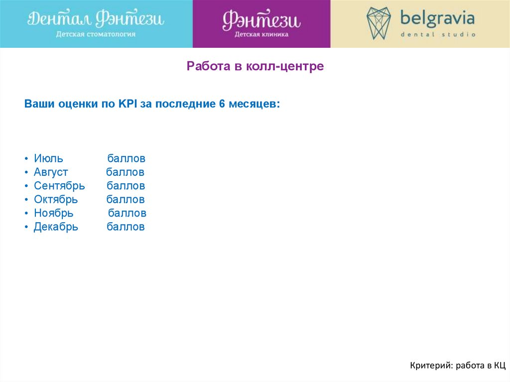 Работа в колл-центреВаши оценки по KPI за последние 6 месяцев:
