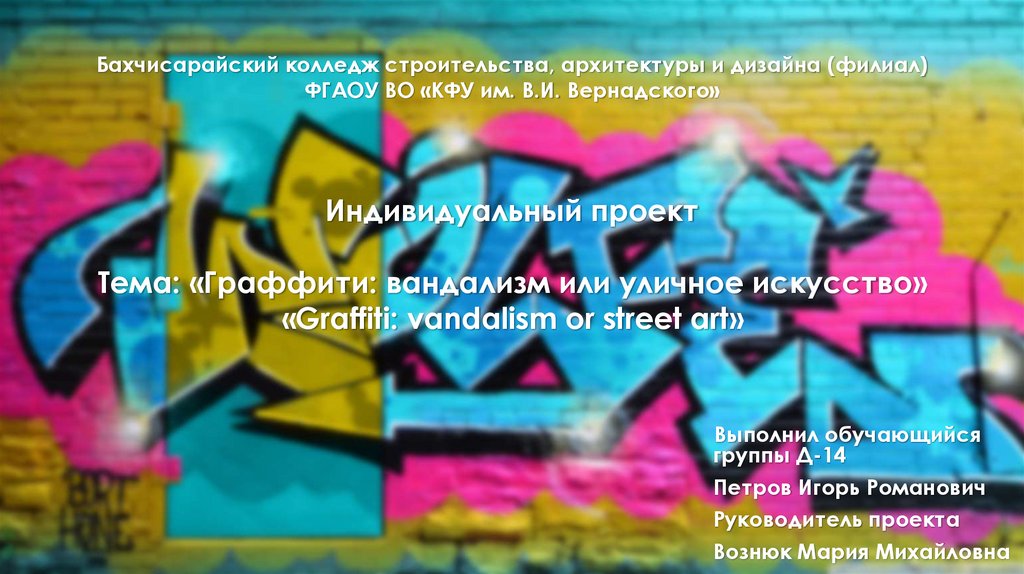 Индивидуальный проектТема: «Граффити: вандализм или уличное искусство»