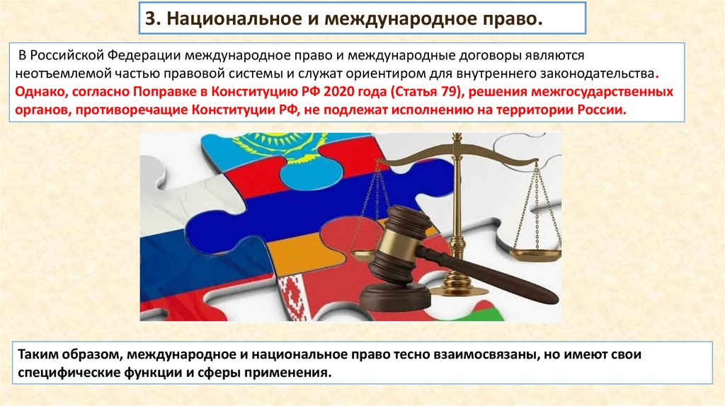 3. Национальное и международное право.В Российской Федерации международное право и международные договоры являются