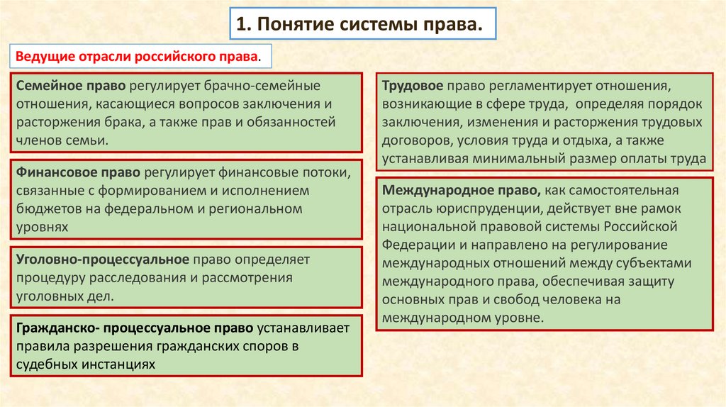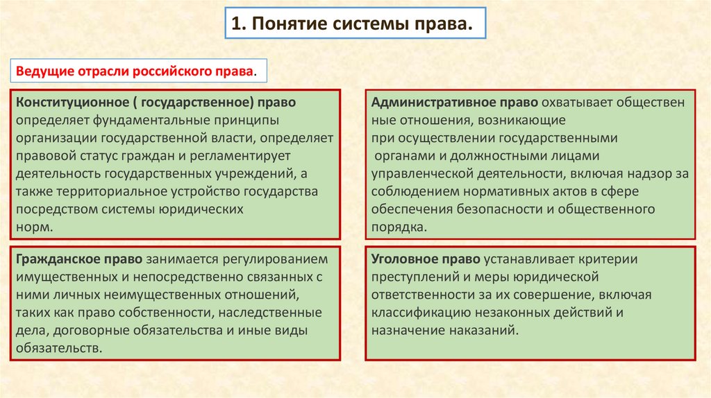1. Понятие системы права.Ведущие отрасли российского права.