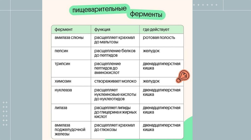Ферменты и их роль в пищеваренииФерменты – специальные белковые молекулы, ускоряющие