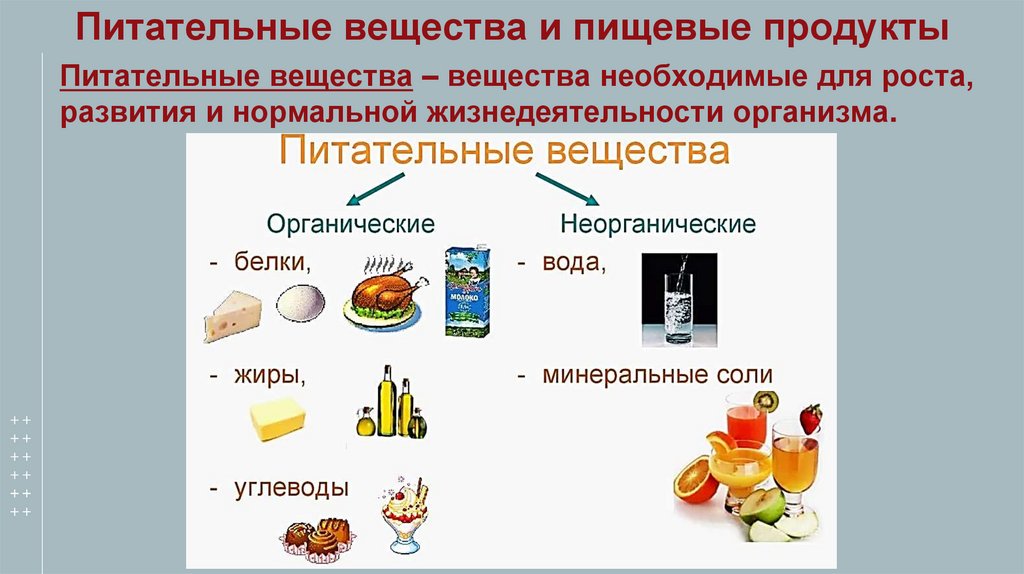 Питательные вещества и пищевые продуктыПитательные вещества – вещества необходимые для роста,