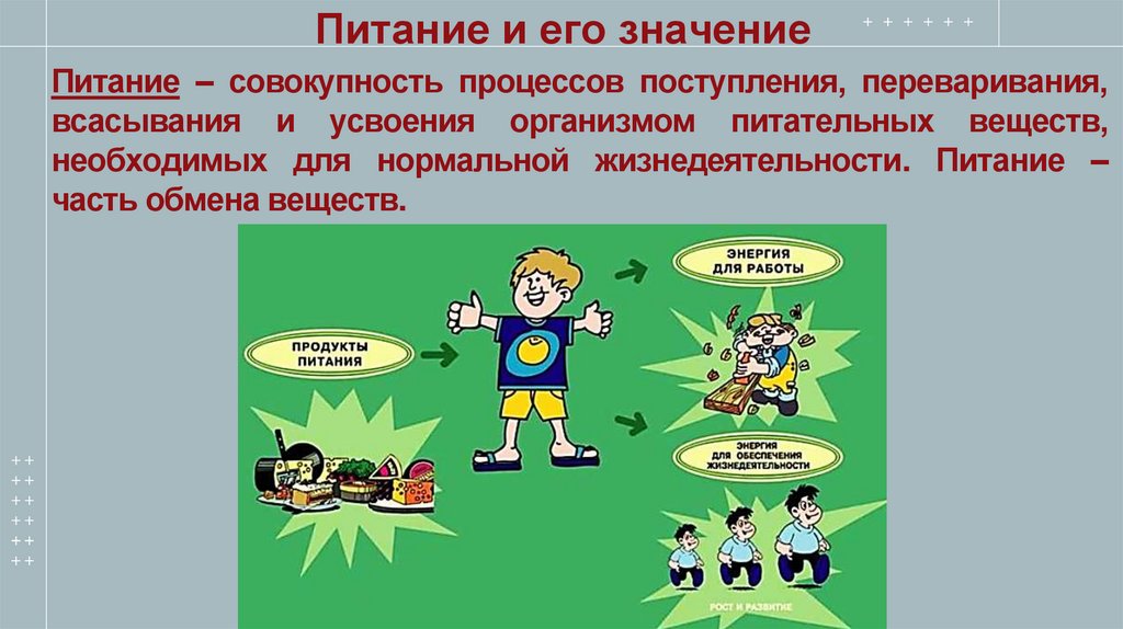 Питание и его значениеПитание – совокупность процессов поступления, переваривания,