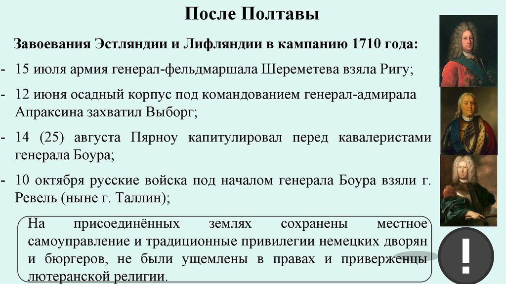После ПолтавыЗавоевания Эстляндии и Лифляндии в кампанию 1710 года: