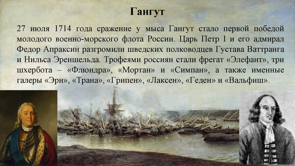 Гангут27 июля 1714 года сражение у мыса Гангут стало первой победой