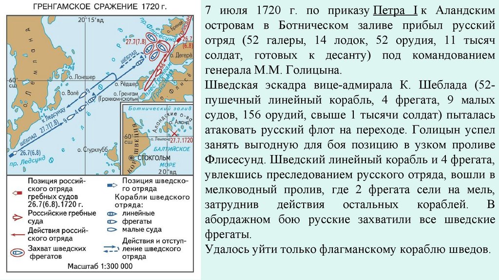 7 июля 1720 г. по приказу Петра I к Аландскимостровам в Ботническом заливе прибыл русский