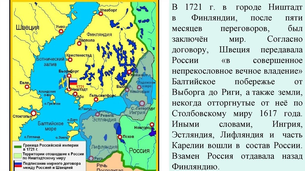 Прибалтикой и передачу Лифляндии и Эстляндии Августу II, а Ингрии и Карелии — России. После чего