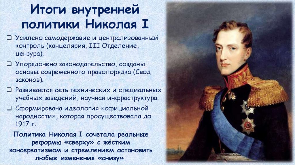 Итоги внутреннейполитики Николая I