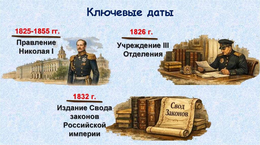 Ключевые даты1825-1855 гг.