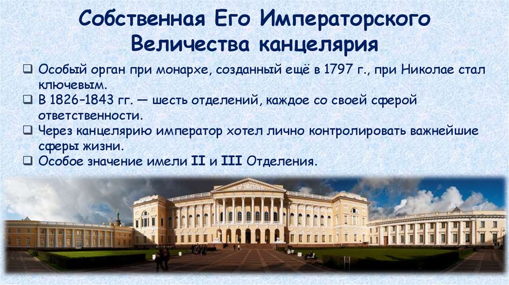 Особый орган при монархе, созданный ещё в 1797 г., при Николае стал