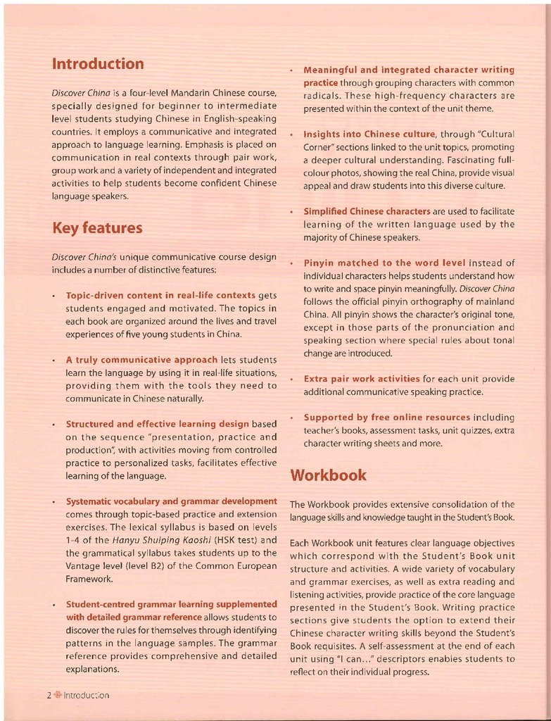 IntroductionDiscover China is a four-level Mandarin Chinese course,