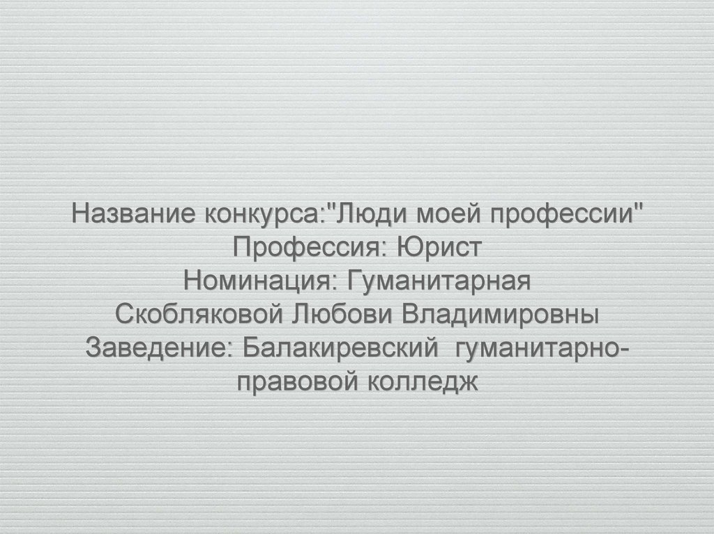 Название конкурса:"Люди моей профессии"Профессия: Юрист