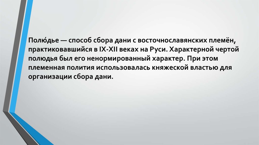 Полю́дье — способ сбора дани с восточнославянских племён,практиковавшийся в IX-XII веках на Руси. Характерной чертой