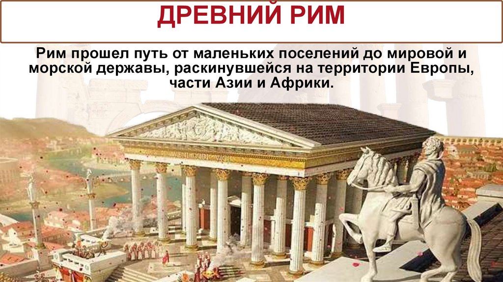 ДРЕВНИЙ РИМРим прошел путь от маленьких поселений до мировой и