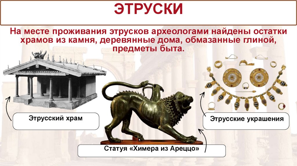 ЭТРУСКИНа месте проживания этрусков археологами найдены остатки