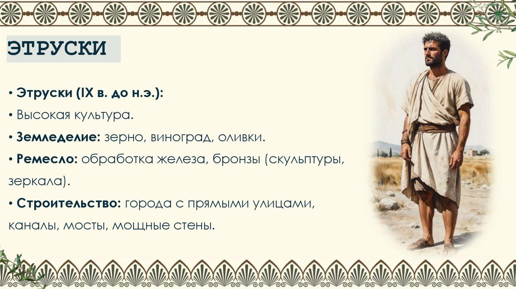 3. Ответ: Этруски славились как искусные земледельцы, ремесленники по