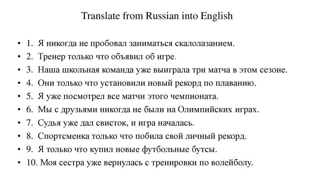 • 10. Моя сестра уже вернулась с тренировки по волейболу.