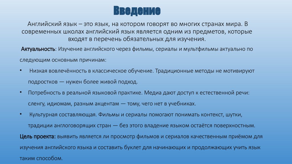 Актуальность: Изучение английского через фильмы, сериалы и мультфильмы актуально по