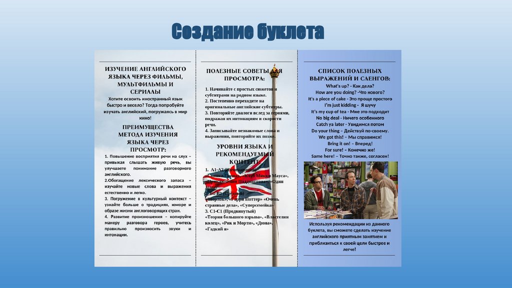 изучения английского языка и составить буклет для начинающих и продолжающих учить язык