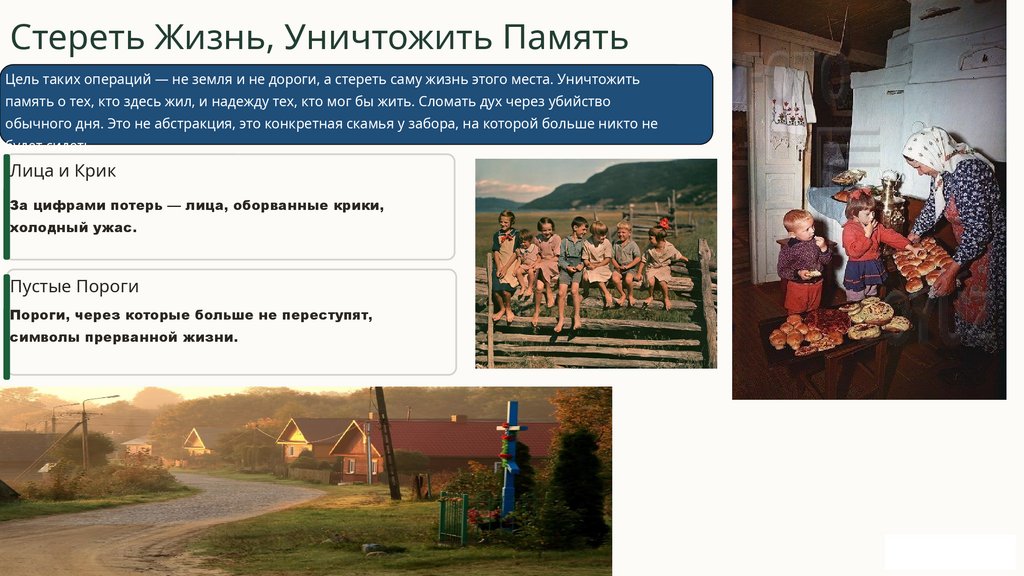 Стереть Жизнь, Уничтожить ПамятьЦель таких операций — не земля и не дороги, а стереть саму жизнь этого места. Уничтожить