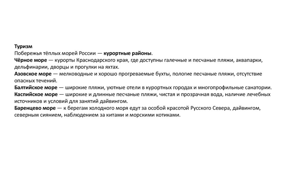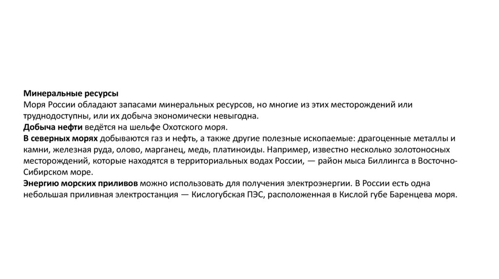 Минеральные ресурсыМоря России обладают запасами минеральных ресурсов, но многие из этих месторождений или