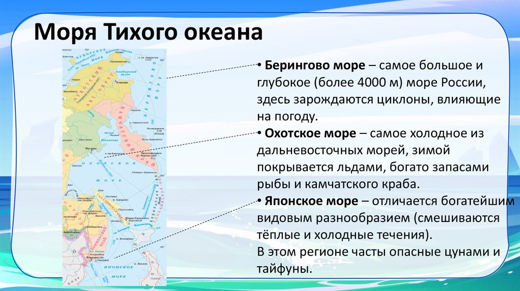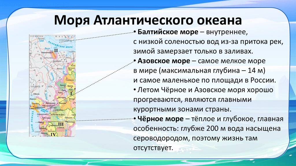 Домашнее задание: §29,30. Уметь показывать моря на карте3.