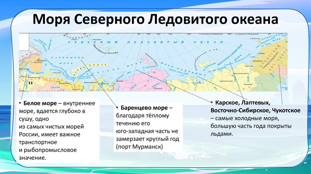 России и Дальним Востоком. Проходит по морям Северного Ледовитого океана (Баренцево, Карское, Лаптевых,