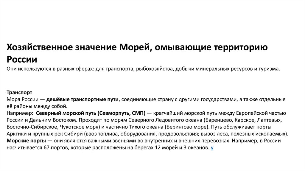 Моря России — дешёвые транспортные пути, соединяющие страну с другими государствами, а также отдельные