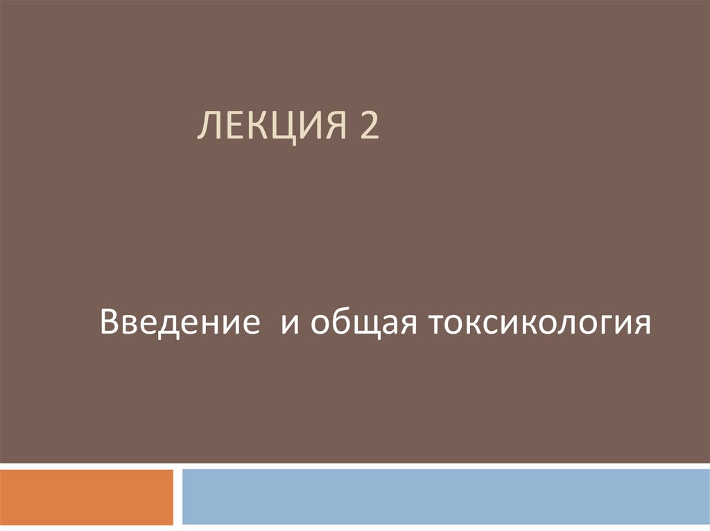 ЛЕКЦИЯ 2Введение и общая токсикология