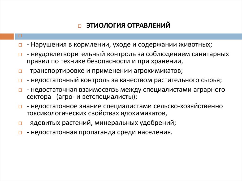 ЭТИОЛОГИЯ ОТРАВЛЕНИЙ- Нарушения в кормлении, уходе и содержании животных;