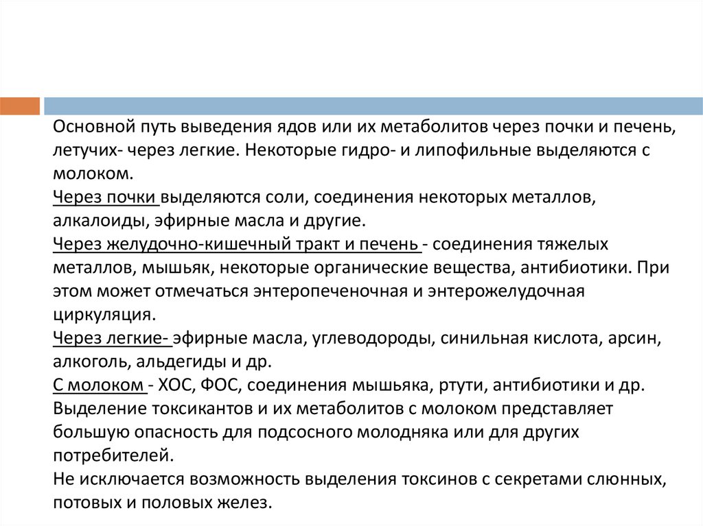 Пути поступления яда в организм ивыведение