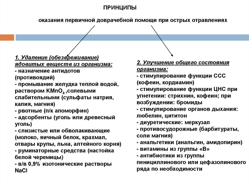 ПРИНЦИПЫоказания первичной доврачебной помощи при острых отравлениях