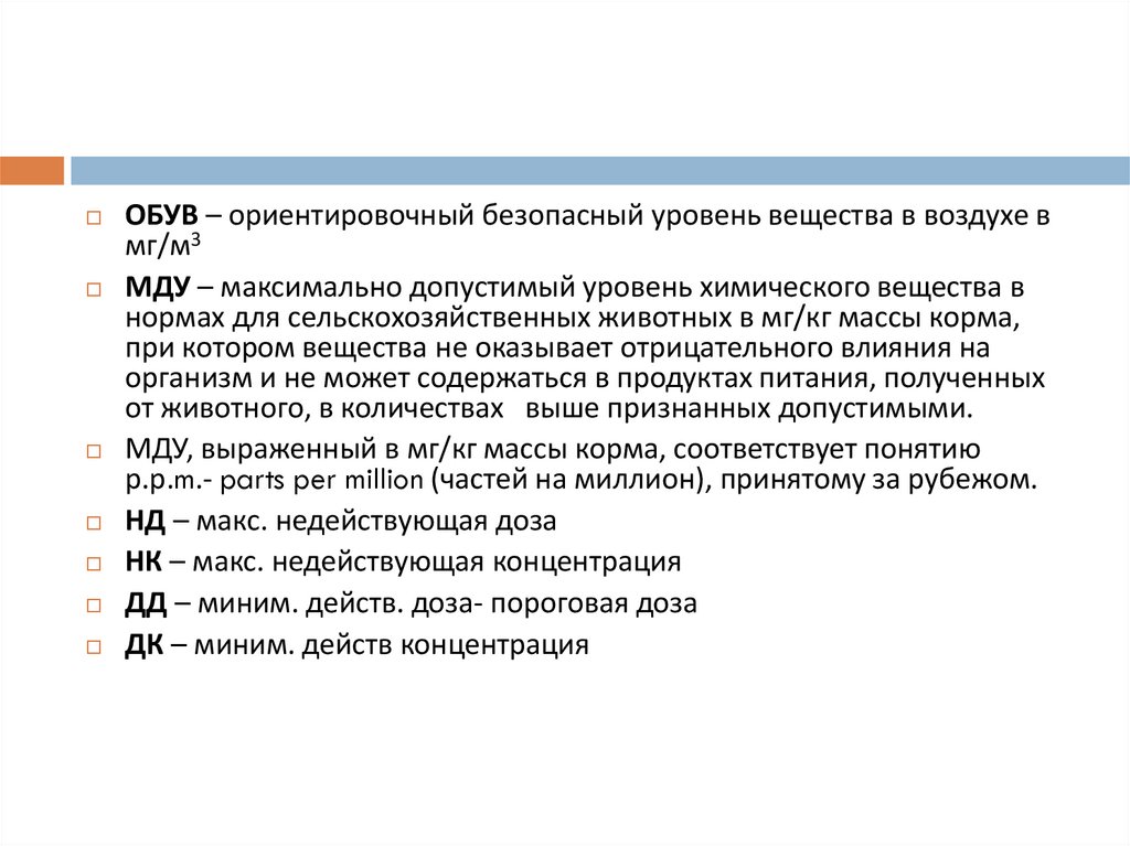 МДУ – максимально допустимый уровень химического вещества в