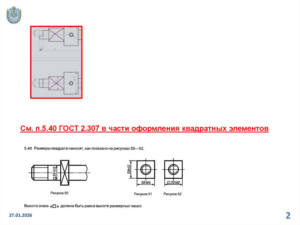 См. п.5.40 ГОСТ 2.307 в части оформления квадратных элементов27.01.2026