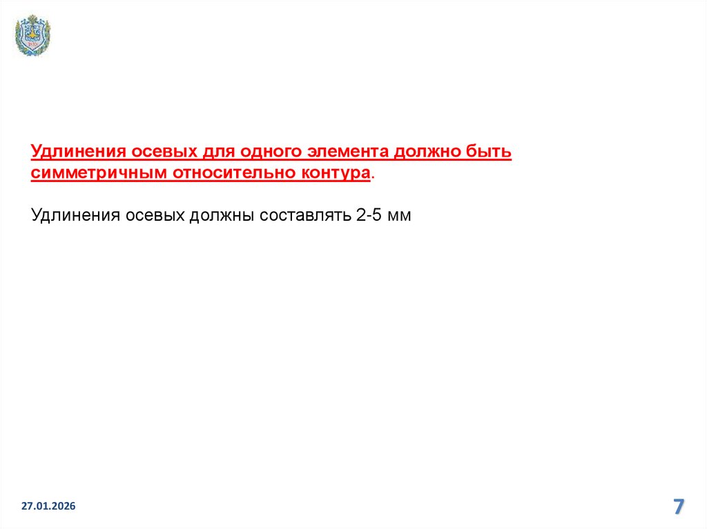 Удлинения осевых для одного элемента должно бытьсимметричным относительно контура.