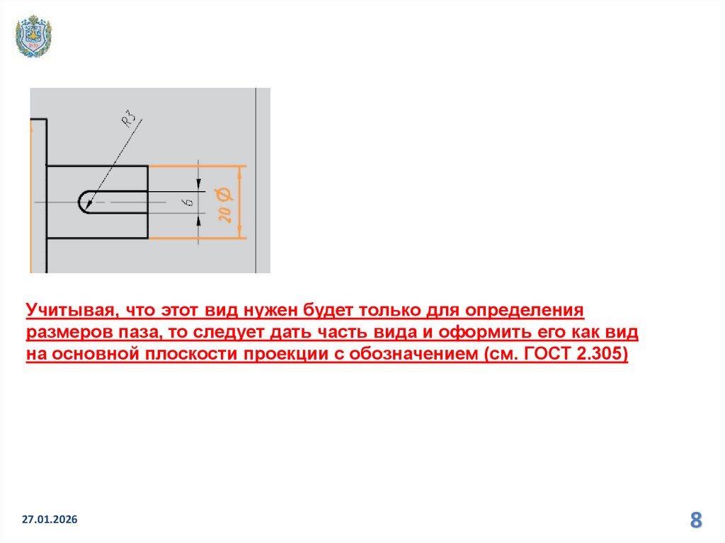 Учитывая, что этот вид нужен будет только для определенияразмеров паза, то следует дать часть вида и оформить его как вид