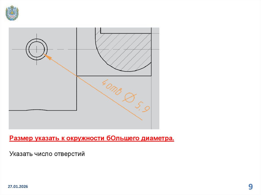 Размер указать к окружности бОльшего диаметра.Указать число отверстий