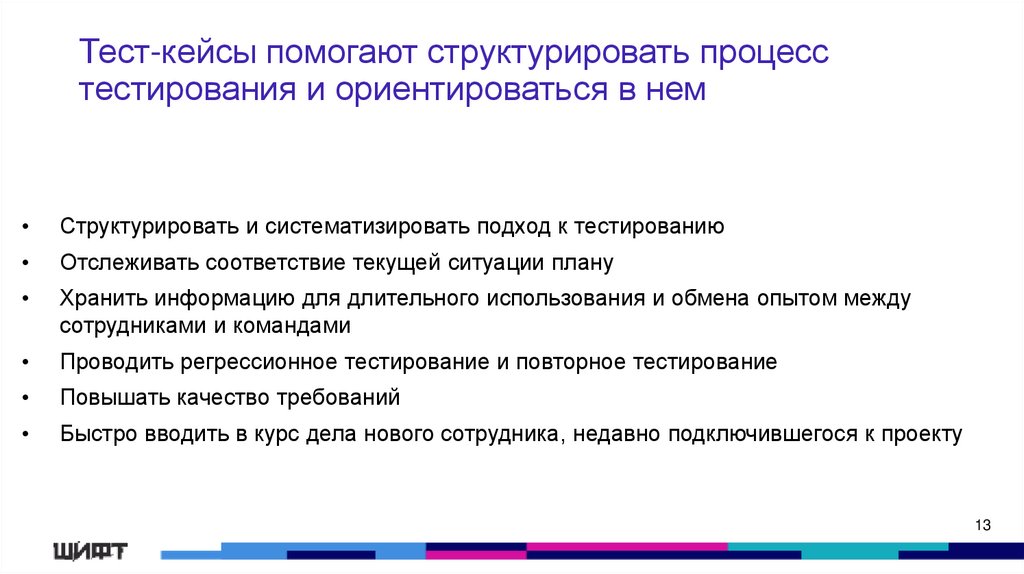 Тест-кейсы помогают структурировать процесстестирования и ориентироваться в нем